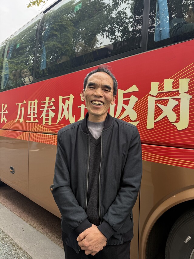 25日早上8点过,朋友把我送到泸州市奥林匹克体育公园中心广场,参加务工人员送别活动,等一会儿由专车把我们送到机场,再坐飞机到南京,全程都是免费。说实话,我非常高兴,因为不用为了返程票不好买去折腾。我每年过年都要回泸州老家,记得前几年有一回买不到火车票,我们一家转道成都,才搭上了飞机。