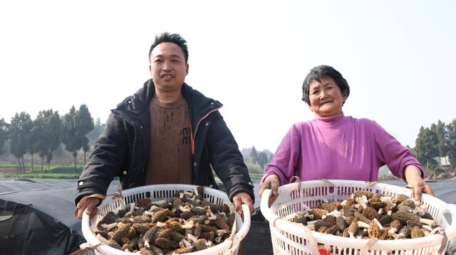 沿着堤岸往下走,一大片黑色大棚格外显眼。90后业主田田是长垭村村民,正带领着一群村民忙着采收羊肚菌,饱满鲜美的菌子盛满竹筐,一派忙碌又鲜活的景象。“羊肚菌娇贵,对水质要求极高,我敢放弃北京的打工生活回乡创业,就是看中白家河水变清,路也修宽了。”他笑着说,得益于河道复苏带来的优质水源,自家羊肚菌品相出众、品质上乘,被成都客商上门收购,干货每公斤售价近六百元,近期已出货两批,每批销售额均达八九万元。68岁的村民范金秀是务工队伍中的一员,她一边分拣菌子一边笑着说,在家门口务工一天能挣60元钱,格外舒心。