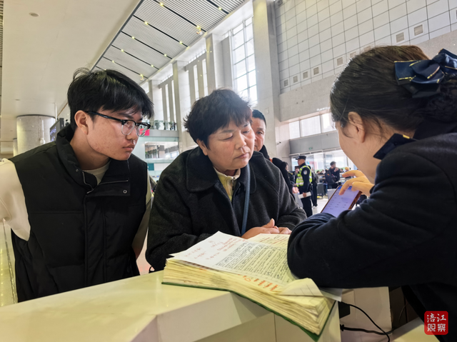 8点20分,进站口传来新的消息:一名视力障碍旅客携带多件行李准备进站。接到通知的李璐君再次快步飞奔至进站口,全程搀扶引导,协助对方顺利进入候车厅、完成检票,直至平安送上列车。