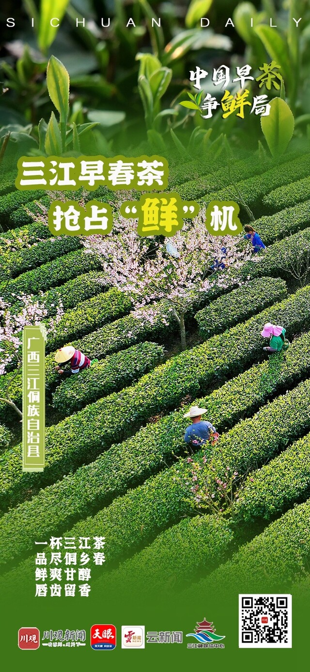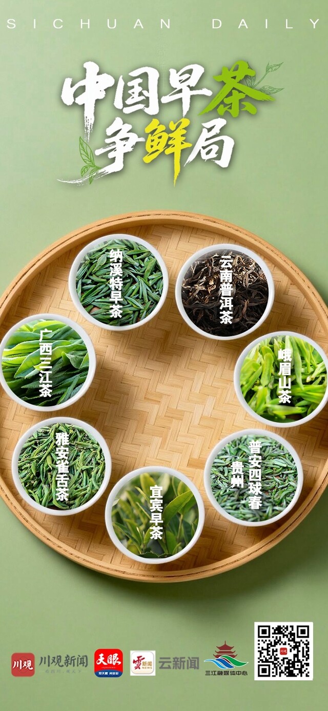 2月以来,春茶之前,从天府之国到多彩贵州,从八桂大地到彩云之南,四川、贵州、广西、云南的早茶陆续开采上市。四川日报联动广西日报、贵州日报、云南日报及省内泸州、宜宾、乐山、雅安等地市,一起循着地球纬度的脉络,尝一口中国春天的第一杯茶吧!