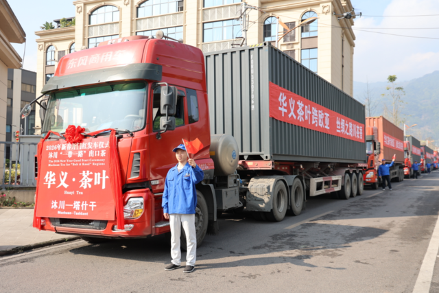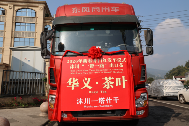 2月27日,乐山市沐川县2026年“拼开局 抢进度”出口“一带一路”茶叶产品千万外贸订单发车仪式在四川华义生物科技有限公司举行。随着发车指令下达,10辆满载“沐川造”茶叶的货车鸣笛启程,驶往中亚市场,标志着沐川茶产业在新春伊始成功拿下千万外贸订单,实现外贸出口“开门红”。