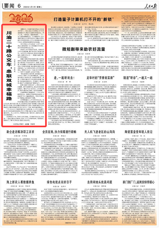 随着川渝毗邻地区陆续开通26条跨省城际公交线路,探亲的路逐渐畅行。就拿川渝20路来说:车站设在村口、场镇,坐车方便、车次频繁;公交线路与重庆轨道交通莲花站、双凤桥站相接,能快速到达重庆主城多数地区。“女儿回来也方便,从月月见到周周见。”晃晃手中公交一卡通,邱大爷笑得开心,“老年卡川渝通用,坐车还不花钱。”