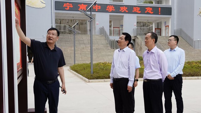 2025年4月16日,全国政协委员、民建中央常委、中华职业教育社副理事长苏华(中)在凉山州宁南县茧丝绸工业园区调研。