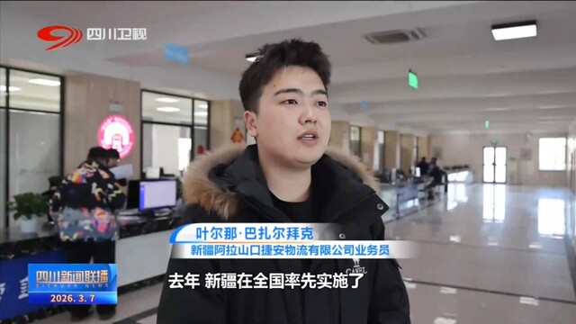 新疆阿拉山口捷安物流有限公司业务员 叶尔那·巴扎尔拜克:去年,新疆在全国率先实施了“智慧铁路口岸+属地快速通关”改革,现在班列到达后,最长不超过24小时就能出关,口岸周转效率提升20%以上,货物查检的成本也降低了近70%。
