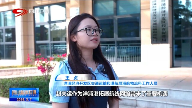 洋浦经济开发区交通运输和港航局港航物流科工作人员 王贞:封关运作为洋浦港拓展航线网络带来了重要机遇。目前洋浦港已累计开通65条集装箱班轮航线,其中内贸航线30条、外贸航线35条,基本形成了“内通外联、覆盖东南亚、服务双循环”的航线网络布局。