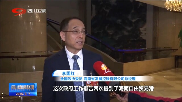 全国政协委员、海南省发展控股有限公司总经理 李国红:这次政府工作报告两次提到了海南自由贸易港,我是希望能够形成“3+7+海南自由贸易港+N”的航空枢纽格局,最终就是想海南整个是航空枢纽,从而使海南对外开放度越来越高,从而真正成为新时代对外开放的一个重要门户。