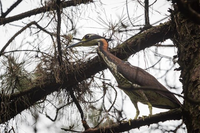 2024年,监测人员在石板河景区的同一棵马尾松树上,再次监测到海南鳽筑巢的身影,这一次,它们成功繁殖出3只幼鸟,林间又添新的生机。