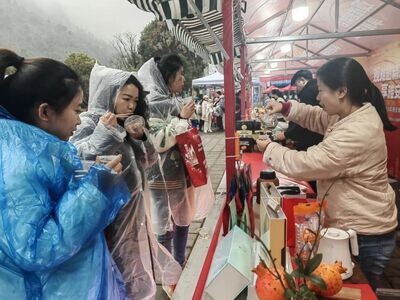 ▲2026年3月7日,“雅超”开幕当天,市民在雅安美食街品尝并购买特色美味