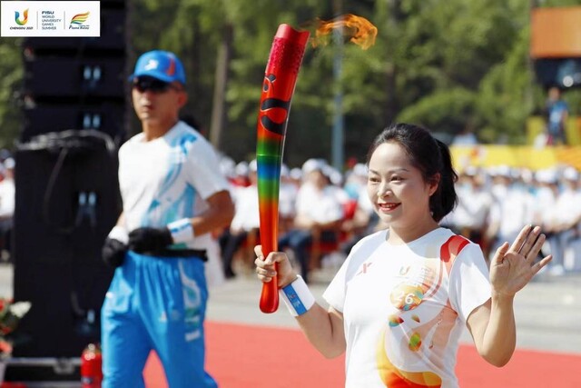 大运会期间,陈贵静作为火炬手参会(图片由受访者提供)