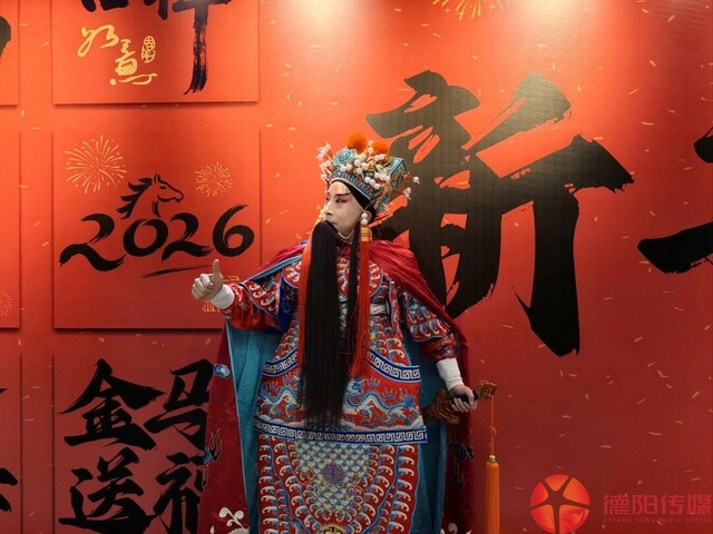 2026年春节期间,德阳孝泉武圣宫内,戏文声、锣鼓声、叫好声响成一片。