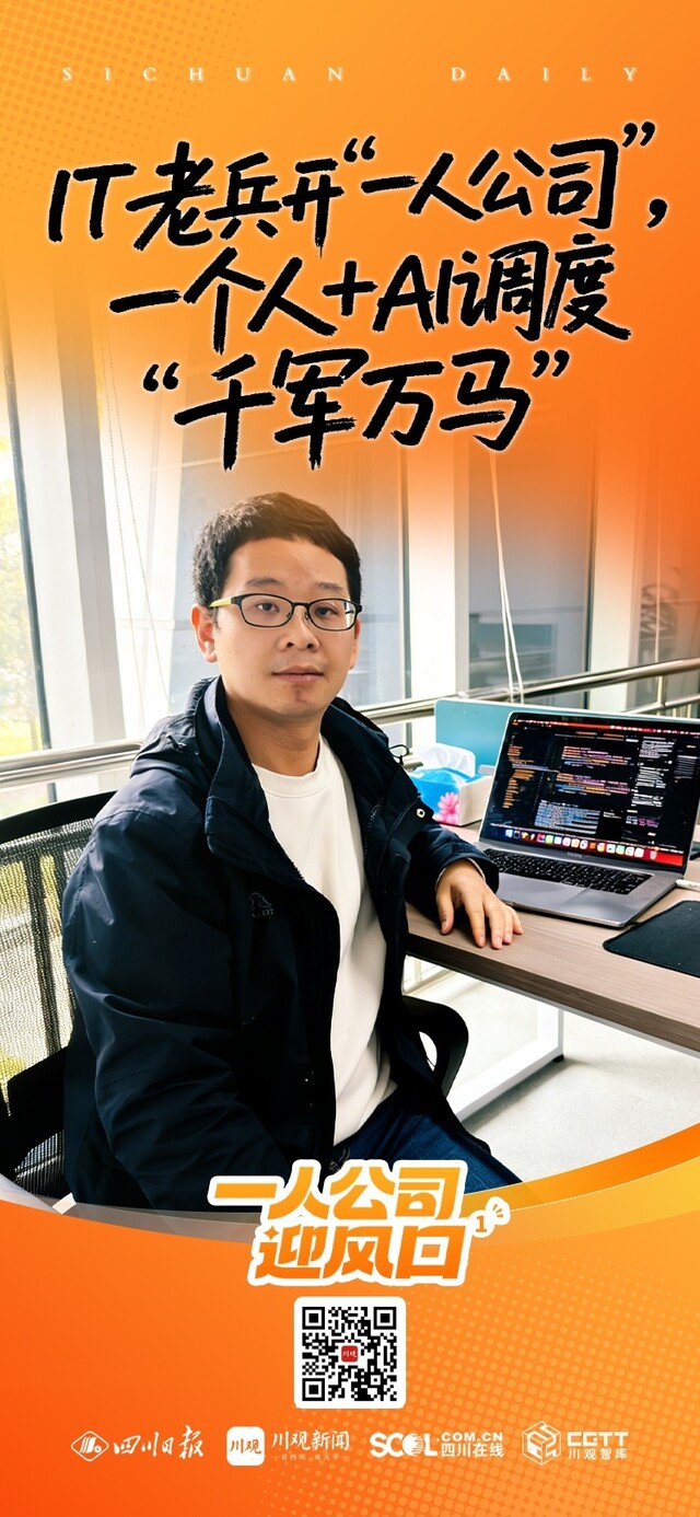 开拓市场、对接需求、编写代码、交付软件……他的日程排得满满当当。聊起“一人公司”的工作节奏,他坦言:“其实和普通公司没什么两样——资金来源、政策支持,该考虑的都得考虑,业务板块一个也没少。”但最大的不同在于,他身边的“同事”,从一群人,变成了一套AI工具集群。