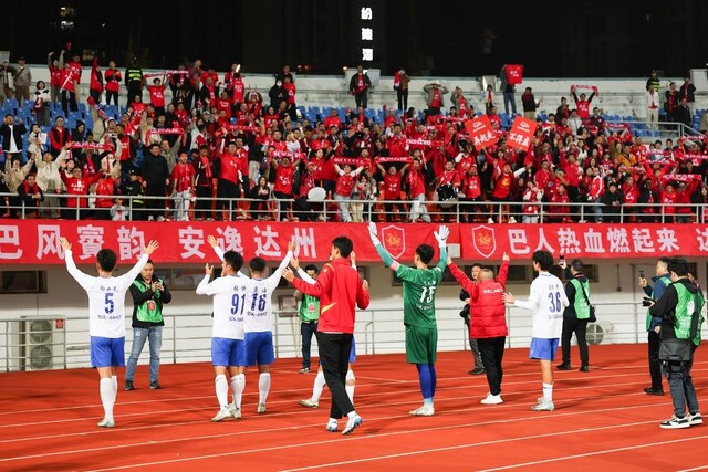达州球员向远征球迷致谢(陈羽啸 摄)