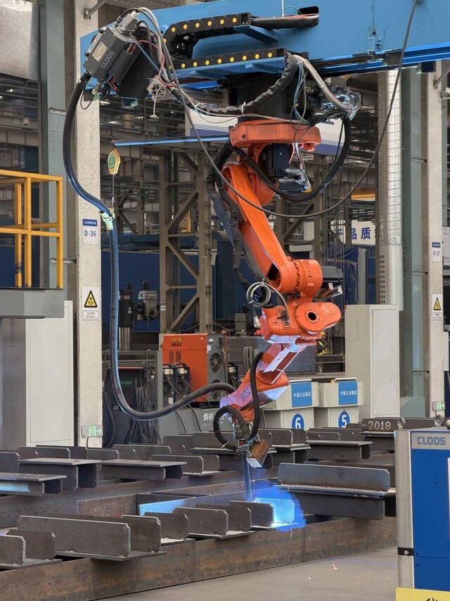走进工厂,偌大的空间里,竟找不出几个人,现场,记者看到从钢板切割、零件分拣到转运、焊接,全程由智能机器人和自动化设备协同完成,实现了全流程智能化生产。
