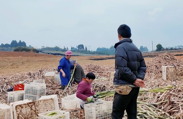 3月初,童鹏飞要完成85亩甘蔗地的栽种,对比去年,今年的甘蔗品种全部换成了更甜的云南黄金甘蔗,栽种面积也比去年扩大了一倍。请来帮忙栽种的阿姨们坐在田边,一边剪甘蔗苗,一边还对去年的热闹场景念念不忘。