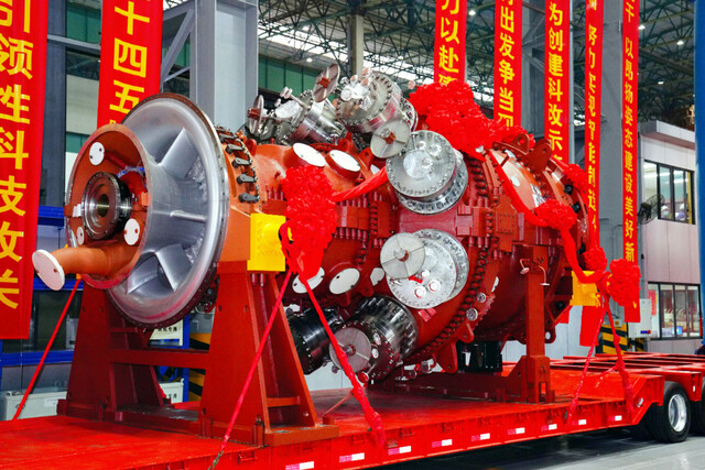 国内首台完全自主知识产权F级50MW重型燃气轮机。东方汽轮机供图