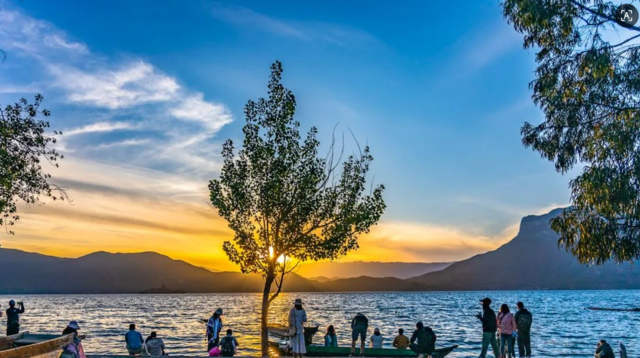 傍晚赴女神湾赏日落,夕阳将湖水染成金橘色,猪槽船的剪影在波光中浮动,晚风裹挟着苏里玛酒的醇香,耳畔传来摩梭人的歌谣。夜幕降临,参与篝火晚会,跟着当地人跳一曲甲搓舞,在欢声笑语中,读懂泸沽湖的温柔与热情。