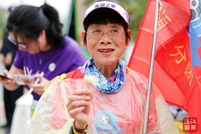72岁的成都跑友陈宗玉,是本次赛事年龄最大的选手。“太惬意了!每个补给站都停下来品尝,一路吃着喝着就到了终点。”她笑着说,“赛道两旁繁花似锦,奔跑在田野间,闻着泥土清香,快慢不重要,和大家一起奔跑,比拿名次更开心!”