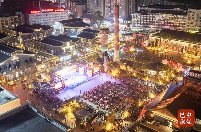 夜晚的巴城记忆文创产业园流光溢彩