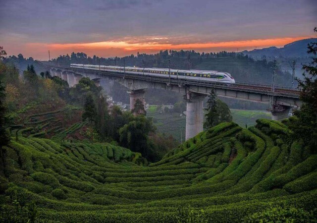高铁驶过茶园(名山区委宣传部提供)