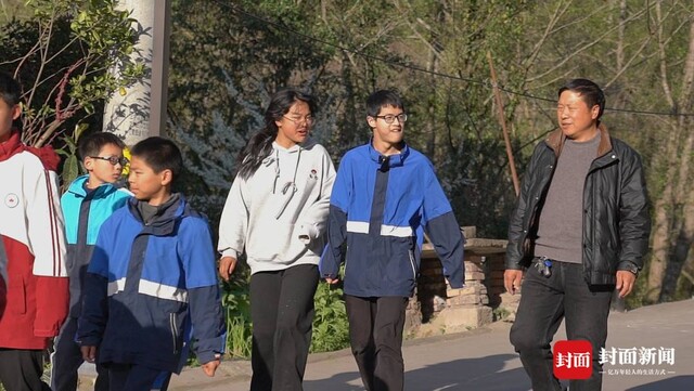 放学后陈果陪孩子们一起回家。