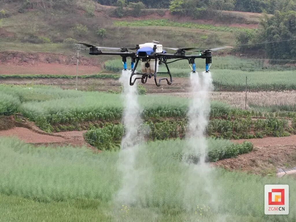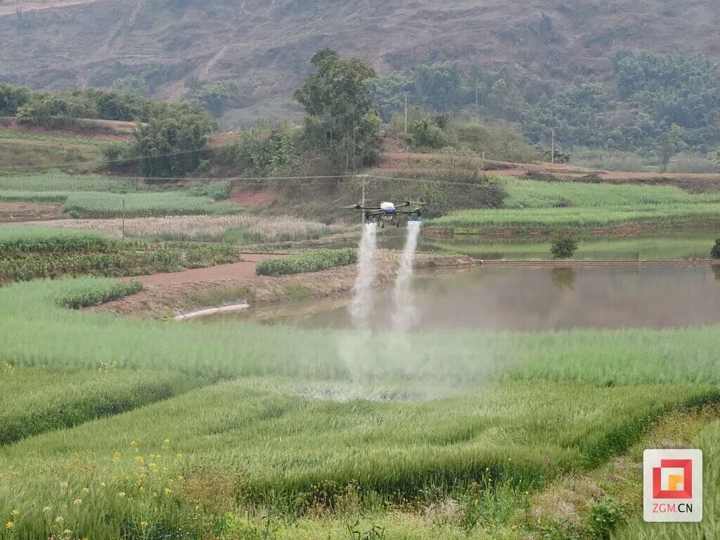 同时,镇村两级统筹调度农事机械设备,强化灌溉、飞防、植保等社会化农事服务,及时排查解决生产堵点难点。在团结村400余亩小麦基地,植保无人机按照预设航线平稳作业,将雾化药剂均匀喷施于小麦叶片,高效开展病虫害统防统治,助力小麦稳健生长、提质增效。