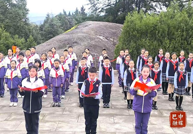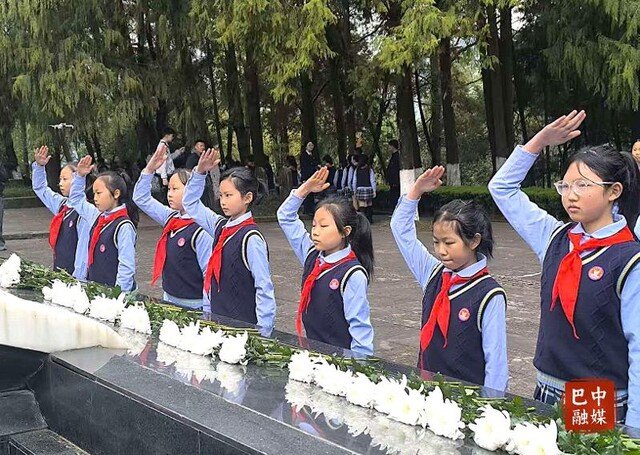 在庄严肃穆的红军烈士集墓前,大家整齐列队默哀致敬,向红军烈士敬献鲜花,表达对先烈的缅怀与敬仰。随后,新入队少先队员佩戴红领巾庄严宣誓,团员重温入团誓词,铿锵誓言回荡在陵园上空,是青春对先烈的承诺。通江县第六小学学生胥若菲眼神专注,宣誓结束后,她悄悄攥紧了衣角:“戴上红领巾的那一刻,我仿佛感受到了先烈们的目光,我知道,这不仅是一份荣誉,更是一份责任。我将强身健体、奋发图强,努力成为爱学习、懂感恩、肯奋斗的新时代好少年。”