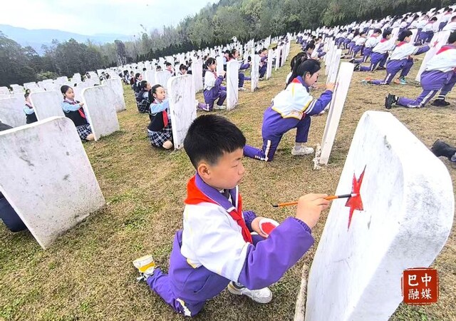 在无名烈士纪念园,大家手持毛笔,小心翼翼为墓碑上的五角星描红,一笔一画间,将英烈精神深深刻进心底。通江县实验小学学生陈星桥认真地描摹着每一笔,“这些无名烈士没有留下名字,却为我们留下了幸福的生活,我要把五角星描得更红,让他们知道,我们没有忘记他们。我要珍惜当下、刻苦学习,立志成长为对祖国、对人民有用的人,不负先烈,不负时代。”