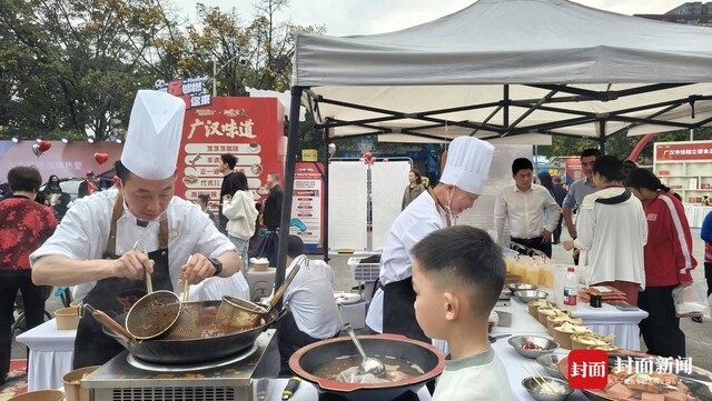 广汉作为这一次开场表演的举办方,也将广汉特色搬到了会场。广汉火锅的味道飘满了整个体育场。“毛肚火锅现场撕现场煮现场吃,真的太棒了。”当天下午,不少球迷纷纷排队感受这一份热情。