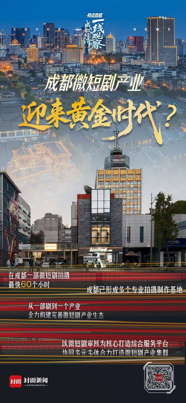 在成都毫不例外,本地企业扎堆入局,拍摄基地连片落地,产业链条日趋完整,从内容创作、拍摄制作到宣发形成闭环,多部“川造”微短剧走红全网。当前,成都正以产业集聚,推动“微短剧+文旅+科技”深度融合,打造具有全国影响力的数字文创新高地。
