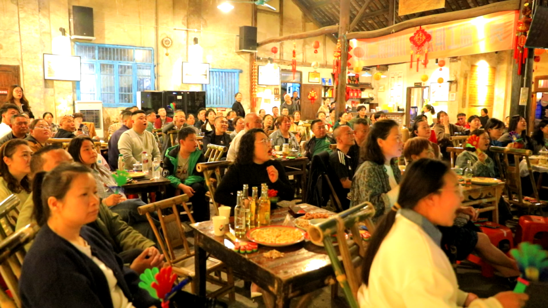 艾叶镇盐工俱乐部内,工业风的厂房被改造成最燃的观赛据点。当VAR取消对手进球时,厂房里炸开锅般的喝彩声仿佛要将屋顶掀翻;下半场每一次进攻,大家都紧握拳头,齐声高喊改编自盐工号子的助威口号——“嘿嚯!自贡!嘿嚯!雄起!”那浑厚的呐喊声穿透夜空,将千年盐都的豪迈气概展现得淋漓尽致。
