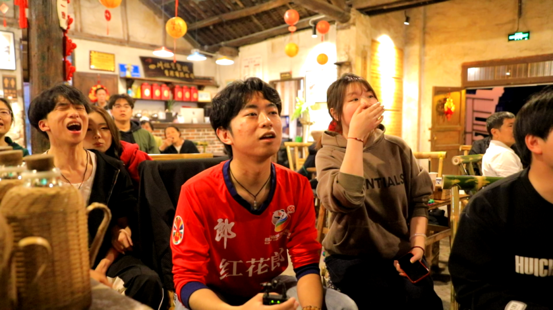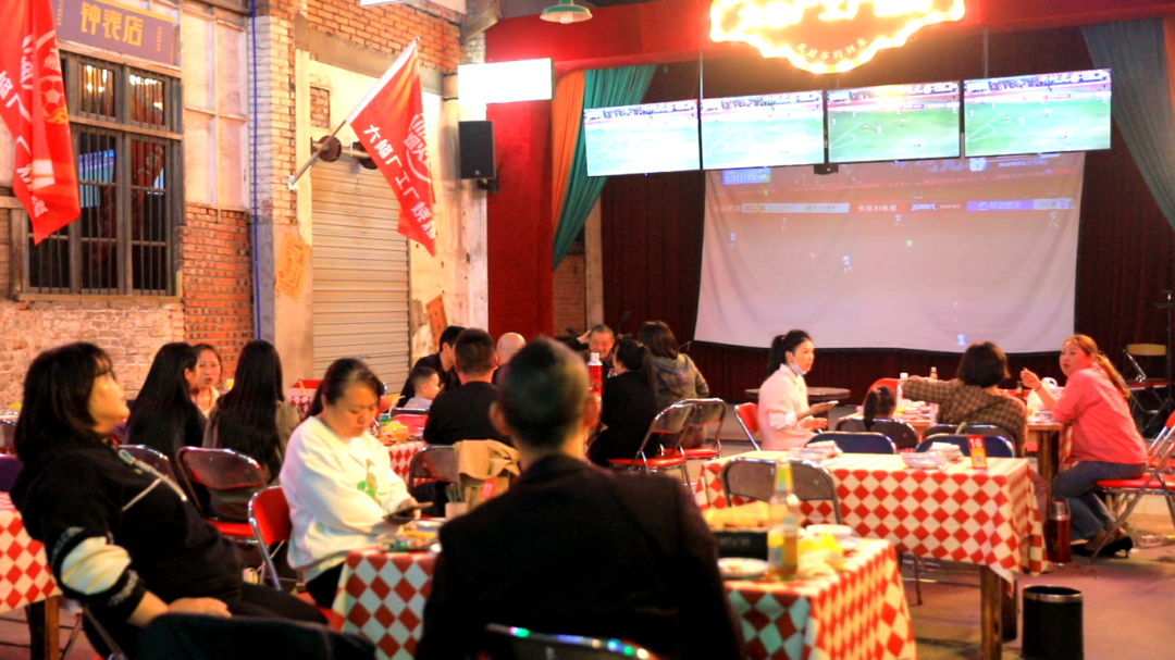 立玲夜宵内同样是激情四射。每当自贡队发起进攻时,大家便齐刷刷站起来,忘了手中的美食,只顾着呐喊。大修厂工厂烧烤里,球迷们一手举着烤串,一手挥舞助威棒,眼睛始终不离屏幕。当那记“世界波”划破夜空时,大家瞬间炸裂,欢呼声、碰杯声、汽笛声响成一片。