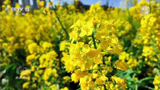 重庆大足区的油菜花竞相绽放。在城郊的棠香街道和平村,1200亩油菜花宛如金色地毯,成为市民踏青休闲的好去处。