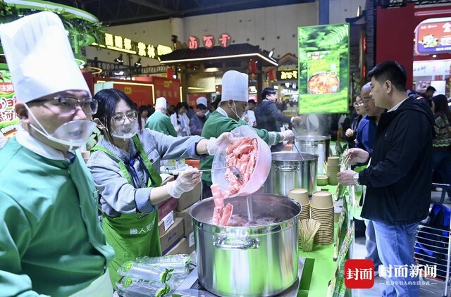 绿色农业也是头一回以整馆规模亮相。走进西博城的绿色农业展区,迎面而来的是融合自然生态与现代风格的展台设计——乡土的温度和年轻人的审美在这里撞了个满怀。来自全国各地的上万种优质农副产品摆满展台,吉林的大米、黑龙江的菌菇、四川的茶叶……逛展的人一边走一边尝,感叹全国糖酒会让优质农产品走出田间、走向全国,让“乡土中国”的生态馈赠与“现代生活”的品质需求紧密相连。