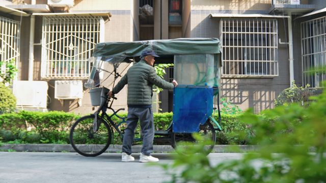 故事要倒回7天前,2月9日下午4:18,金华社区监控拍下这一幕:三轮车师傅廖义兴,停稳车,双手捧着一包年货,走进社区办公室。