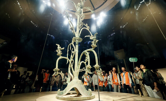 香港青少年在三星堆博物馆参观青铜神树。