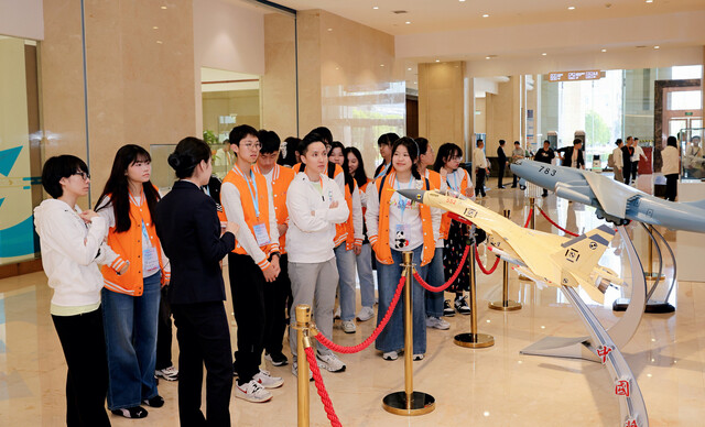 香港青少年在纵横股份·鹏飞科技园了解航空科技前沿知识。