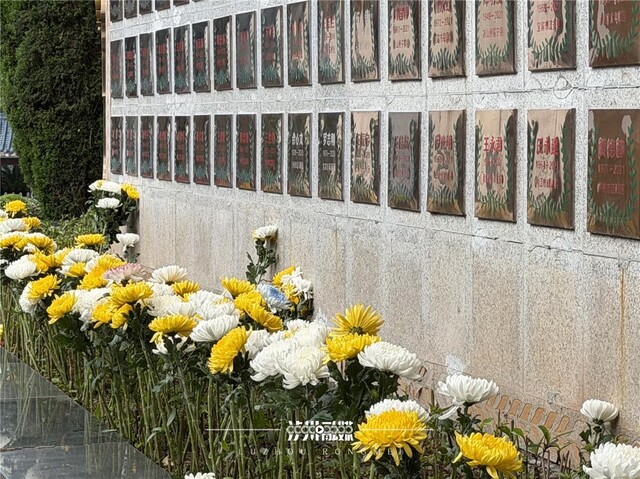 纪念墙前,花朵静放。一个个名字虽归于沉寂,却在另一种意义上持续发亮。