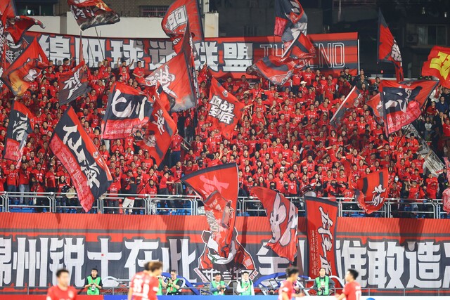 球迷们士气如虹、高声呐喊