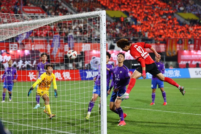 绵阳队92号头球攻进对方球门