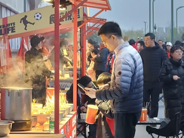 借力川超联赛,双流体育中心打造超万平方米足球嘉年华,成都兔头、宜宾燃面等地道小吃香气扑鼻。五粮液文体中心则利用场馆周边的五环广场和凤凰之眼广场等地“整活”,通过分布在入口附近的创意集市,以及酒吧、咖啡厅、西式快餐店等,给球迷们提供休息和交流的空间,场馆工作人员还在各主要点位引导球迷出入场,并为行动不便等需要帮助的球迷及时解决问题。“我们希望通过热情用心的服务,让主客队球迷都能感受到成都的魅力。”成都城投万馆体育文化发展有限公司副总经理李丽表示。