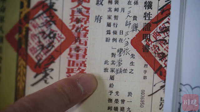 为什么?雅安市档案馆编研宣传科科长杨朝慧告诉记者,由于解放初期、匪患肆虐、信息缺失、交通不畅、烈属迁徙等历史原因,部分《革命军人牺牲证明书》等文书未能送达烈属手中。按照属地管理原则,这些文件就被保存在了当地档案馆里。