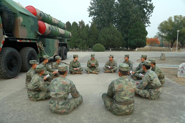 中部战区空军“模范地空导弹营”开展“鸣镝讲堂”交流活动(2022年10月25日摄)。新华社发(赵胜之 摄)