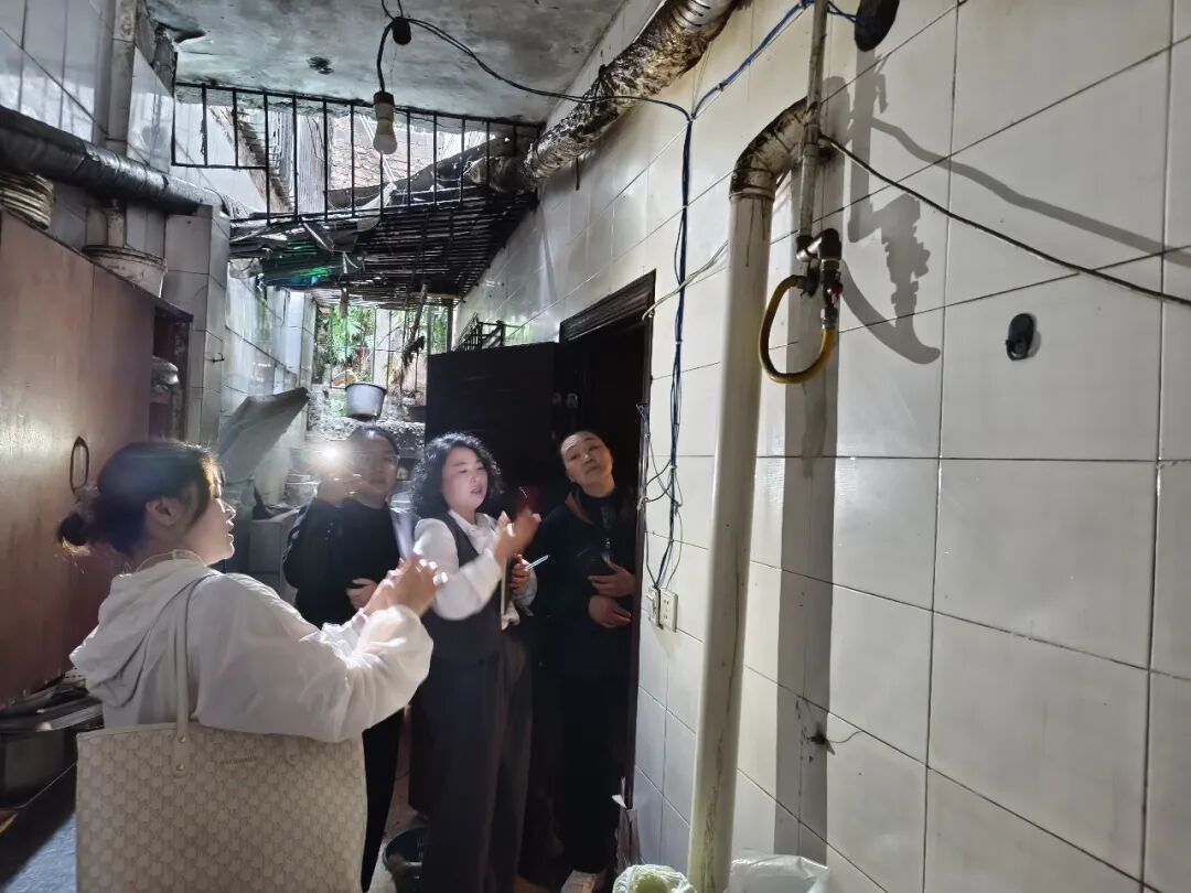 随后,队伍又来到一家包子铺。这里热气腾腾,后厨空间紧凑。专家带着大家逐一排查:灭火器有没有被杂物挡住?电气线路铺设是否规范?燃气报警器安装位置对不对?每一个细节都不放过。