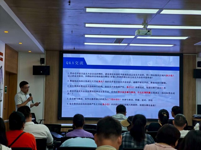 互动答疑环节将活动推向高潮。参会人员结合各自小区在违建、维修基金、停车管理等方面遇到的实际问题踊跃提问,律师逐一给予专业解答。现场交流热烈,与会者纷纷表示,这种理论联系实际的培训方式既提升了法律素养,又为解决社区治理难题提供了思路。一位参与者说:“今天这种培训的方式,听得懂、记得住、用得上。”