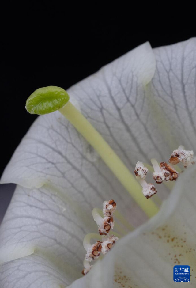 这是4月8日在华西亚高山植物园使用微距镜头拍摄的凸尖杜鹃花蕊。新华社记者 江宏景 摄