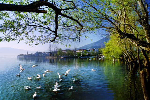 邛海碧波荡漾,鸥鸟翩跹,