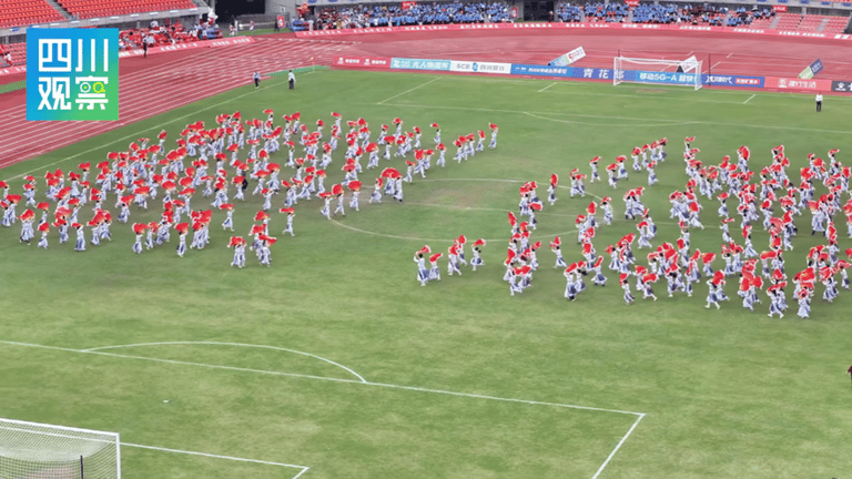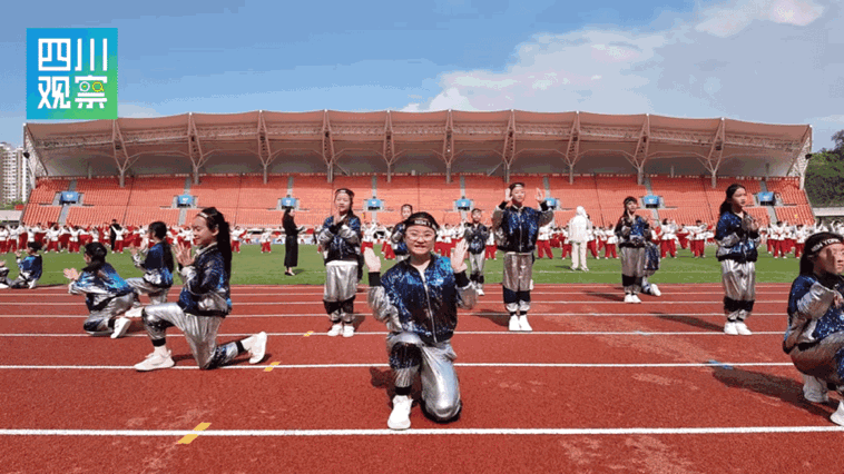 目前,参演师生正全力彩排:荣县梧桐树小学校的孩子们反复走位,用奔跑穿梭呈现如诗如画的队形;近400名中小学生集结的《氟都旗扬》,红旗挥舞、扇面开合,尽显盐都风采。