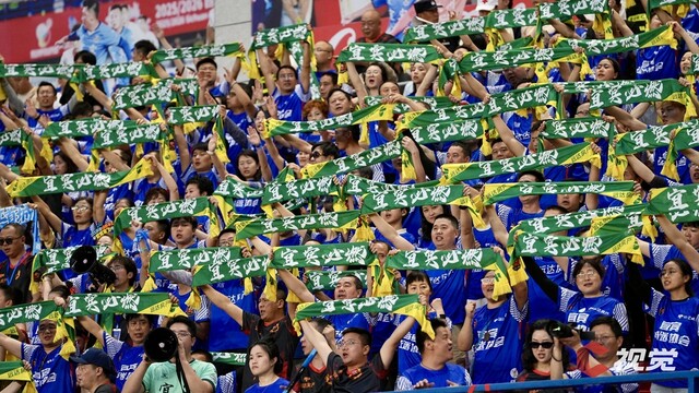 4月11日,“川超”决赛阶段第五轮迎来备受瞩目的“南北”对决,自贡灯城燊龙队坐镇自贡南湖体育中心,迎战绵阳九洲长虹队。图为最强“第十二人”呐喊助威。C视觉签约摄影师 李秋玥 摄