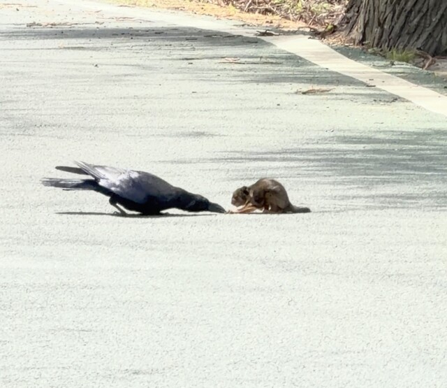 就在这时,另外一只乌鸦也从远处飞了过来,原本准备加入战斗,但看到鼯鼠已经受伤,便“网开一面”,趁此间隙,鼯鼠加快步伐逃离了现场。