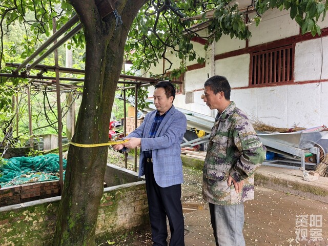 秦族权和何君洪测量树围。